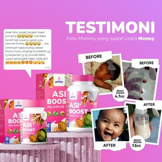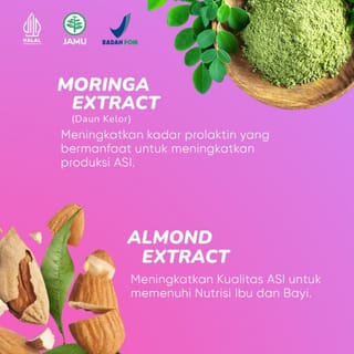 MOMSY Breast Milk Booster is a breastfeeding booster product that is able to increase breast milk production and fulfill the nutrition of mothers and babies. Utilizing 4 NATURAL INGREDIENTS AT ONCE that are trusted for generations and have been clinically tested can increase breast milk production in breastfeeding mothers. BREAST BOOSTER MOMSY BPOM TR 223011761 HALAL LPPOM DIY-12130003801222 ADVANTAGES OF MOMSY BREAST MILK BOOSTER Almond Extract Moringa Extract (Moringa Leaf) Fenugreek (Bibi Klabet) Canna (Snakehead Fish) Extract The content of ALMOND EXTRACT is beneficial for breastfeeding mothers so that it can be used as a galachagog. Contains Fiber, Protein, Vitamin E, Calcium and Folic Acid which is good for breastfeeding mothers. As well as containing unsaturated fats that can increase breast milk density The content of Moringa Leaves is useful for increasing Prolactin levels which can increase breast milk production, Strengthen the immune system of mothers and babies and prevent anemia The content of FENUGREEK is useful to increase the ANTIOXIDANTS needed by mothers during breastfeeding to avoid oxidative stress The content of SNAKEHEAD FISH Extract is useful for healing postpartum wounds and contains nutrients (Protein, Unsaturated Fat & Carbohydrates) which are useful as an additional intake of nutrients for breastfeeding mothers. THE FULL BENEFITS OF BREAST MILK BOOST MOMSY Increase MILK PRODUCTION Improve the QUALITY of Breast Milk Helps the postpartum wound healing process Nutritional fulfillment for Mommy and baby (Protein, Carbohydrates, Vitamin E, Calcium & Folic Acid) Increases ANTIOXIDANTS to avoid OXIDATIVE STRESS Increase immunity for mommy and baby RECOMMENDED USE : Consume MOMSY Boost Breast Milk 1-2 capsules, 3x a day after meals consistently Meet the body's fluid needs, which is 3 liters per day Happy Mommy, Healthy Baby in the sense that breast milk production is also affected by Mommy's condition. Routine & actively giving breast milk to the baby Bestienya Mommy-Mommy