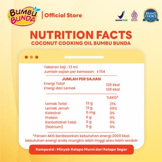 BUNDA ELIA Coconut Cooking Oil – Healthy Virgin Coconut Oil for Babies and Children BUNDA ELIA Coconut Cooking Oil is a pure virgin coconut oil specially designed for babies and children, as well as the whole family. Made from selected coconut, this oil is rich in essential nutrients that are good for heart health and digestion. Suitable for daily cooking, this oil provides a natural savory taste and is more economical to use. Product Advantages: 100% Pure Virgin Coconut Oil: Made from high-quality virgin coconut, it gives a savory taste and a distinctive coconut aroma to every dish. Good for Heart Health & Diabetes: The content of medium-chain fatty acids (MCTs) in coconut oil helps regulate blood sugar levels and supports heart health, making it safe to use for people with diabetes and heart disease. More Economical & Economical: This oil can be used for up to 3 frying times without compromising on the quality of taste and culinary results, making it a more economical option for families. Low Cholesterol: Suitable for use for babies and children because this oil is cholesterol-free, helping to maintain a healthy body from an early age. Why Choose BUNDA ELIA Coconut Cooking Oil? Supports Healthy Growth and Development of Children: This coconut oil is rich in healthy fats that are easily digested by the body, helping the absorption of essential vitamins and supporting optimal growth and development. Suitable for All Types of Cuisine: Whether used for frying, stir-frying, or as an addition to salads or steamed foods, it provides flexibility in cooking a variety of dishes. Natural Savory Texture & Taste: The fried product becomes drier, savory, and delicious with a distinctive coconut aroma, making each dish more delicious and loved by children. Nutritional Benefits of Virgin Coconut Oil: Boosts Immunity: The content of lauric acid in coconut oil helps to increase children's immunity, keeping them healthy and strong. Supports Healthy Digestion: Coconut oil helps improve metabolism and digestion, helping children get optimal energy from each meal. Low in Saturated Fat: This oil has a lower saturated fat content compared to regular cooking oil, making it a healthier option for families. How to use: Frying and Saurying: Use coconut oil for frying and sautéing, giving dishes a dry, crispy result. Addition to Salads or Steamed Foods: Add a little coconut oil to salads or steamed foods to enhance flavor and nutrition. Other Benefits: More Usable Utilization: It can be used up to 3 times in the frying pan without compromising on flavor quality, making it more economical and efficient. Safe for Daily Use: With healthy nutritional content, this coconut oil can be used daily to prepare nutritious meals for families. Choose BUNDA ELIA Coconut Cooking Oil for healthier, tastier, and more economical dishes for your little one and the whole family. Make every dish healthier with nutrient-rich virgin coconut oil! Net : 500 ml