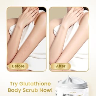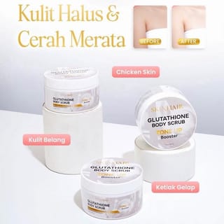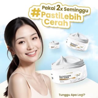 GLUTATHIONE BODY SCRUB TONE UP BOOSTER Skin lightening scrub that can brighten the skin to the maximum because it contains Tone Up Booster ✨ with brightening ingredients Glutathione, Niacinamide, Vitamin C which are effective in brightening and nourishing the skin to the maximum How to use : •Take enough scrub and apply it all over the body •Let it sit for a while, then massage gently until dirt and dead skin cells are lifted •Rinse thoroughly •Use regularly 2-3 times a week •For maximum brightening results, use GLUTAWHITE lotion after scrubbing BPOM APPROVED ✅ Safe and Secure net : 250gr