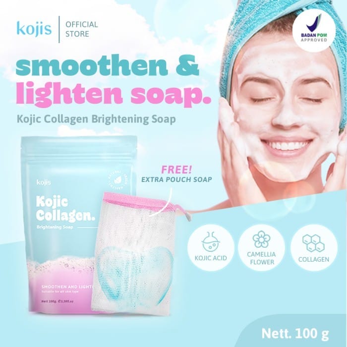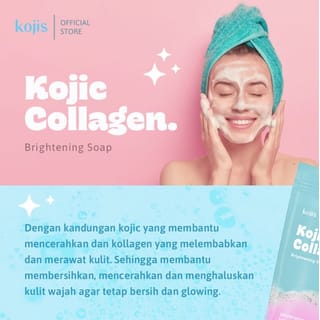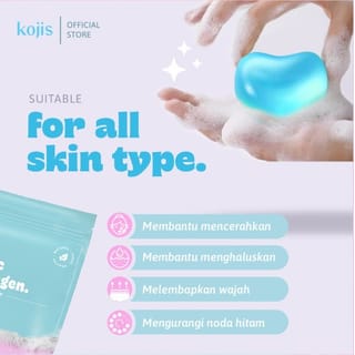 KOJIS X QIANSOTO 100% Original Brand New Variant : Brightening Soap POM NA18231203490 NET : 100gr With kojic content that helps brighten and kollagen can moisturize and care for the skin. So that it helps clean, brighten and smooth the skin of the face so that it remains clean and glowing. Can be suitable for all skin types. Collagen Variant: Collagen has several benefits for the skin, including: Increases skin moisture: The collagen in soap can help hydrate the skin, maintain the skin's natural moisture, and prevent dry skin. Improves skin elasticity: Collagen soap can help repair skin elasticity that is lost due to aging or environmental damage. Reduces wrinkles and fine lines: The collagen in soap can help reduce the appearance of wrinkles and fine lines on the skin, making the skin look younger and smoother. Brightens the skin: Collagen soap can help brighten the skin and reduce the appearance of dark spots or dark spots. Helps reduce acne: The collagen in soap can help relieve skin inflammation and reduce acne and acne scars. Improves skin texture: Collagen soap can help improve skin texture, making it feel softer and smoother. 8X FASTER WHITENING and BRIGHTENING 4 MAIN INGREDIENTS Sodium Palmate Preserve Skin health Preserve Skin health COLLAGEN Maintaining the lining Outer Skin Fixed smooth and healthy Kojis brightening. whitening. Treating Spots black and dull skin Camellia Japonica Flower Locking moisture and Leather Making Glowing appearance