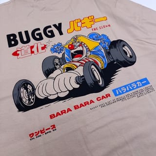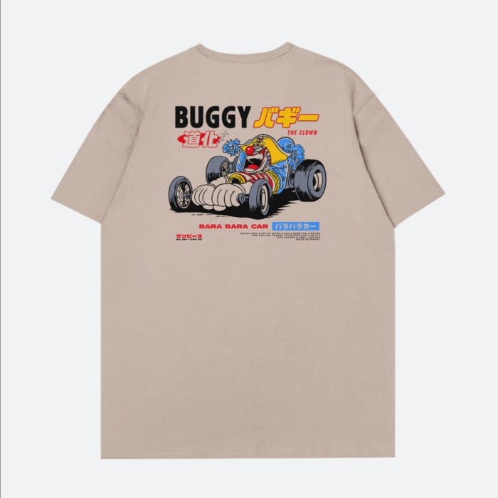 One Piece Anime Series, Buggy The Clown Graphic T-Shirt. We always try to present graphic t-shirts with creative and entertaining designs, such as one of the Buggy's abilities to separate its body into pieces and become a racing car that provides strategic advantages on the battlefield, one of which is to escape ___ Product Summary : • Graphic Short Sleeve T-Shirt • 100% Cotton, Sweat absorbing and soft handsfeel • Combed 24 #39; s with a grammage of 175 gsm • Milk Brown Color • Regular Fit with Chain Sewing on the shoulders • Round collar with collar width +- 2 cm • Superwhite screen printing, Durable, smooth and not easy to fade/break ___ • Size guide is on the last slide of the photo • The size available according to the product variation. • T-Shirt and Screen Printing color 90% as original due to lighting and camera factors during photo sessions • Delivery schedule every Monday-Saturday at 19.00 WIB or D+1 max at 12.00 WIB after the order is received ___ Don't hesitate to ask about product information and orders, - Thank you for supporting our small business -