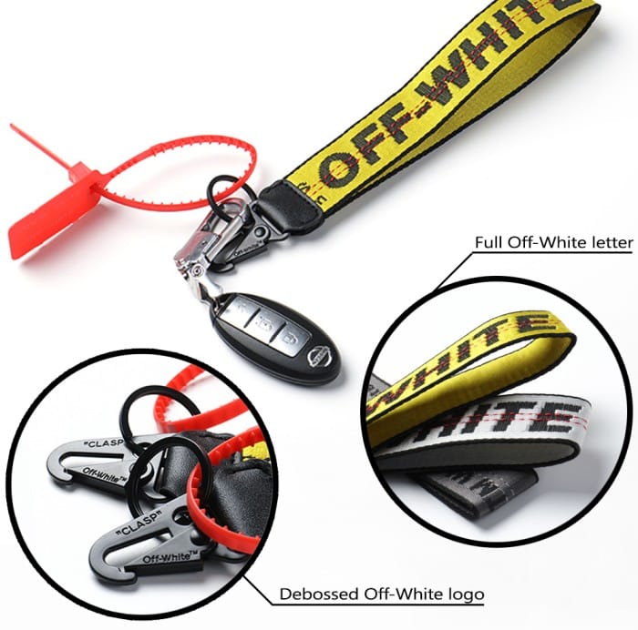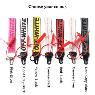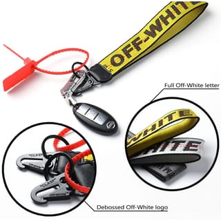 Premium keychain with Full "OFF WHITE" inscriptions, uncut. Suitable for car or motorcycle keychains. Premium quality builds, neat materials and cuts. Contents in the purchase : - Off White hanger strap - Zip Tie Off white - Keychain Ring - Zipper Bag Off white Color Options : - Pink-Silver - LightGrey-Black - Yellow-Black - Canvas-Black - Red-Black - Canvas-Silver - DarkGrey-Black Note: Please Add to Chart according to the selected variant