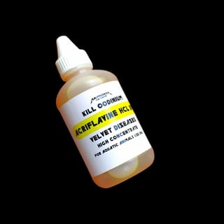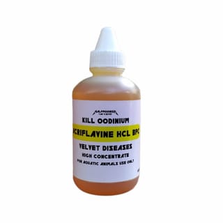 ACRIFLAVINE HCL BPC by. HALFMOONISM KILL OODINIUM VELVET DESIRESES HIGH CONCENTRATE *FOR ALL ORNAMENTAL FISH Effectively prevent and treat fungal and parasitic infestations. Indications: Velvet Desireses Fungus Gill decay Skin infections Moldy mouth Mold on eggs Dosage: Prevention: 1 drop per 3-4L of water Treatment: 1 drop per Liter of water or 5ml per 25L of water Contains 100% Acriflavine HCL BPC Products from Halfmoonism Official