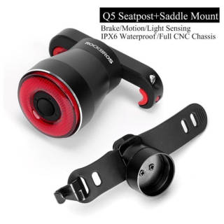 [ Code Pic : 3 ] Product details: Rockbros Bicycle Light Smart Brake Auto Start Stop Sensor Q5 is the latest Product from rockbros, the lights are very smart and stylish when stopped the lights will automatically turn brightly on as well as motor vehicle lights when pressing the brakes. :) This Lamp Version Has 2 Brackets: under saddle and seat Post. the difference with other stalls is only getting one Bracket. so, Yukzz please order, hunt out. This Bicycle Light can be recharge, so there is no need to replace2 batteries. LED COB. 1.Full 6061 Aluminum alloy chassis. 2.Automatically turn on/off depending on the light intensity and motion. 3.Automatically switch to sleep mode to save power. 4.Seat rail mounting 5.Three flash modes. 6.20hrs+ run time. 7,400mAh Li-ion re-chargeable battery. 8.USB charging. 9.Battery indicator ( flashes every 6 seconds) 10.Compact and Light weight design (55g). 11.IPx6 Water proof.