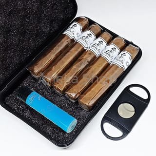 Description of Johnny Short Robusto Wooden Box Cigar Contains 10 Cigar ; Popular Vitola: Short Robusto Ring Gauge: 50 Cigar Length: 4.5" Body: Mild Packaging : Wooden Box Quantity : 10 Cigar /box Box Specifications: 13.4 cm x 12 cm x 5 cm Variant 5pcs + cutter + match : * 5pcs Johnny Short Cigar * 1pc Cigar Cutter * 1pc lighter (included with box) Variant Johnny 5pcs : * 5pcs Johnny (included with box) Complete Package Variant: * 3pcs Johnny Short Cigar * 1pc cigar needle * 1pc stainless cutter Happy Shopping!