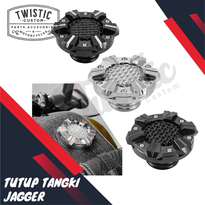 Jagger Tank Cap for Harley Motorcycle A380 aluminum material combined with stainless steel mesh material Inserts can be disassembled for custom painting Specifications: - Color: Black/Black Silver/Silver - Material: Aluminum + Stainless PNP Harley Touring Road King Softail Dyna Sportster