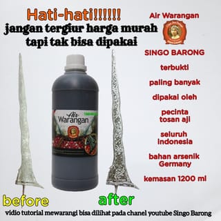 Warangan Air products from SINGO BARONG have proven their quality and have been widely used by tosan aji lovers throughout Indonesia and even abroad. Made from natural ingredients with the active ingredient Arsenic Germany. If you are not proficient in swinging, we will give you a tutorial video on how to swing. Happy shopping Note: For delivery via gosen or gojek, the limit is until 15:00