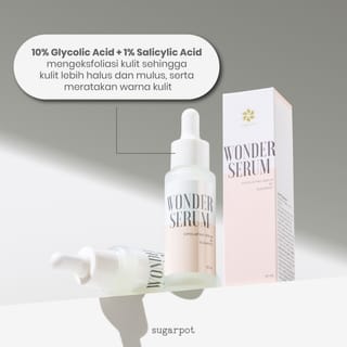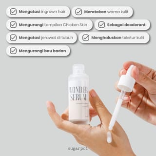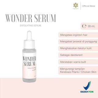 Wonder Serum is a serum that is formulated to help remove ingrown hair or hair that is stuck in the skin. In addition to helping to remove ingrown hair, Wonder Serum has other benefits to help clear up skin problems: • Containing 10% Glycolic Acid + 1% Salicylic Acid, Wonder Serum helps reduce the appearance of Keratosis Pilaris or Chicken Skin by exfoliating without drying out the skin • Helps with acne on the back • Smoothes the texture of the skin in the armpits • Can be used as a substitute for deodorant with PH Glycolic Acid to reduce the production of excess odors. Let the serum do the wonder! How to use: Apply Wonder Serum to the area you want to treat evenly and let it sit until it absorbs. Use it regularly to remove hair that is stuck in the skin. Attention: Because the skin tolerance to chemical exfoliants is different, sensitive skin can start gradually until it has a good tolerance to acids. Contents : 30 ml Composition: Aqua, Glycolic Acid, Glycerin, Isohexadecane, Sodium PCA, Polyacrylamide, Salicylic Acid, C13-14 Isoparaffin, Laureth-7, Phenoxyethanol, Aloe Barbadensis (Aloe Vera) Extract, Cucumis Sativus (Cucumber) Fruit Extract, PEG-40 Hydrogenated Castor Oil, Polysorbate 20, Allantoin, Tetrasodium EDTA, Tocopheryl Acetate Glycolic Acid 10% + Salicylic Acid 1% POM NA18200102697