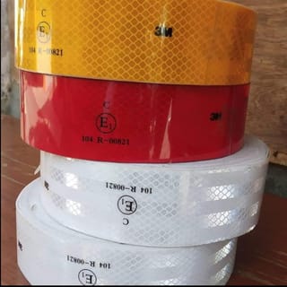 3M Reflective Car Reflector Sticker - KIR DISHUB TRUCK BOX Sticker - Red / Yellow / White BEST PRICE in our store... Photos are 100% real shots of your own not taken by google :) Series : 983 with 3M logo and E1 104R-00821 Type: Diamond Grade Conspicuity Marking Buy 1 = 5 cm x 1 meter +/- Buy 2= 5 cm x 2 meters +/- Buy 3=5 cm x 3 meters +/- etc. For the purchase of 1 roll cheaper, here is the link. https://www.tokopedia.com/tkolaris/stiker-reflektor-sticker-kir-reflektif-pemantul-cahaya-murah For the purchase of 1 roll cheaper, here is the link. https://www.tokopedia.com/tkolaris/stiker-reflektor-sticker-kir-reflektif-pemantul-cahaya-murah Brand : 3M ( Best Quality ) Color : Red and Yellow There is a full logo Reflective Sticker / Reflector / Light Reflector Stickers that meet standards are stickers that have code and have high reflective ability. Meet the requirements of the European Test Institute and ECE 104 class C and others. For Rear of the Car: Mandatory RED Color For Left Right Side of Car : Yellow / White