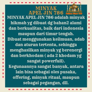 * CONTAINS 3 ML *BLACK * WISDOM OIL *POWERFUL * MULTI FUNCTION * FOR ALL WISHES =========================================== OPERATING HOURS : Monday - Saturday JNT - JNE - TIKI - ANTERAJA - SICEPAT * Orders come in before 16.00 = same day delivery. * orders after 16.00 = POSSIBLE delivery the next day GRAB - GOJEK * Orders come in until 14.00 = same day delivery. * orders after 14.00 = POSSIBLE delivery the next day Sunday / Red Date Off / Closed - The arrival of the order depends on the courier chosen by the buyer - The seller sends the order as soon as possible according to the note above - don't forget to immediately click FINISH after the package is received - Don't forget reviews and 5 stars - There are things that are not clear, please chat - buy = agree ===========================================