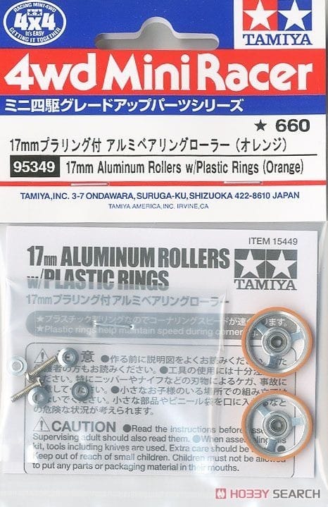 TAMIYA 95349 17MM ALU ROLLERS W/ PLASTIC RINGS ( ORANGE)