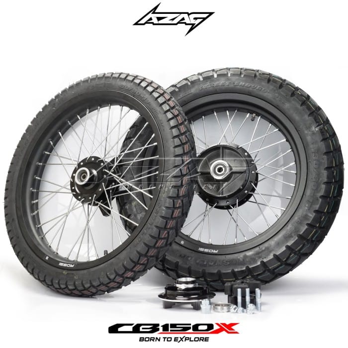 AZAG EXTREME GEAR PRODUCT FRONT ROSSI WHEELS 19/2.50 H36 REAR ROSSI WHEELS 17/3.00 H36 HONDA CB150X DRUM SILVER NIPPLE SILVER FINGER SWALLOW SB STREET ENDURO TYRE 90/90-19 SWALLOW SB STREET ENDURO TIRE 130/80-17 INNER TIRE NAP GEAR Find more of our Products on Instagram IG: azag_extreme_gear