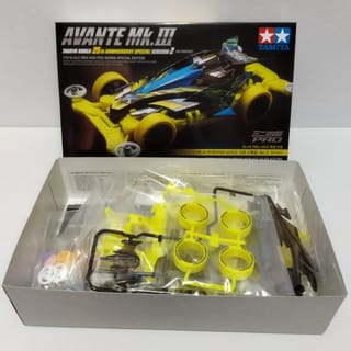 THIS IS THE COVER OF THE BOX IS BENT OR NOT SMOOTH, YES Tamiya 92428 Avante MK III 25th anniversary korea special ver. 2 : * MS pro Yellow fluorescent yellow special chassis * Rim Thin Type Carbon Reinforced black * Ban hard medium Yellow w/ lettering * Gear 3.7:1 * Body Avante Mk III (Smoke-colored)