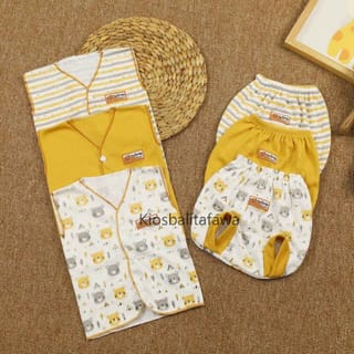CONTENTS 6 PCS - Premium Baby Clothes uk 0-3 Months / Suit Set Button Shirt Gift Birth Gift Stelan Baby Supplies Boys Girls Long Pop Pants Top Kiosk Balitafawa - Mustard, Kutung Suit