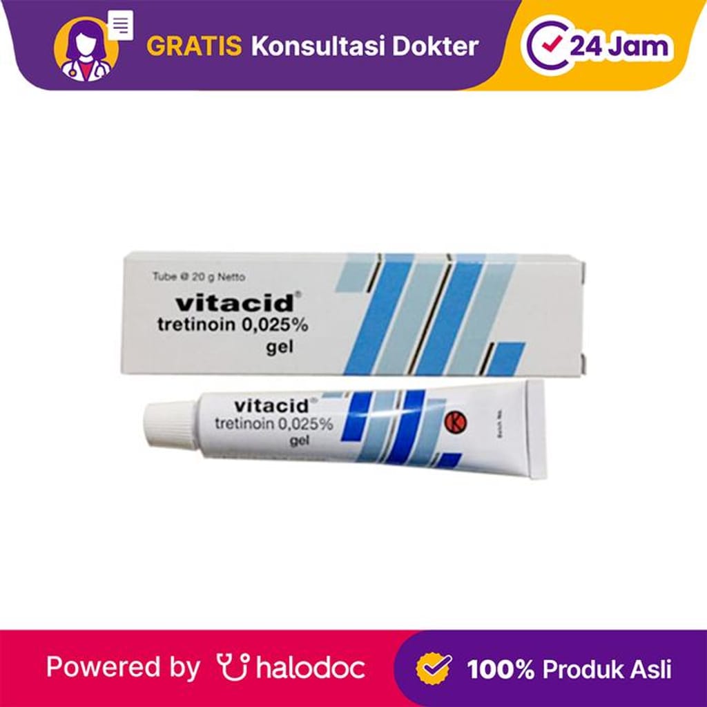 The quantity sent will be adjusted according to the recommendation from the Doctor's Chat Description VITACID GEL is a topical acne remedy with Retinoic Acid or Retinoic Acid (tretinoin). Retinoic Acid promotes mitosis and epidermal cell turnover and suppresses keratin synthesis. Increased skin permeability causes fluid loss to facilitate exfoliation and prevent exfoliation from forming. Therefore, Vitacid Cream is effectively used for the treatment of comedogenic, papule, and pustule acne. In the use of this drug must BE IN ACCORDANCE WITH THE DOCTOR'S INSTRUCTIONS. General Indications THIS DRUG INFORMATION IS FOR MEDICAL PURPOSES ONLY. Acne/acne vulgaris and photoaging Composition Retinoic acid 0.025% Dosage THE USE OF THIS MEDICATION SHOULD BE IN ACCORDANCE WITH THE DOCTOR'S INSTRUCTIONS. Apply 1 x daily Rules of Use Before bedtime Hard Medicine (Red)