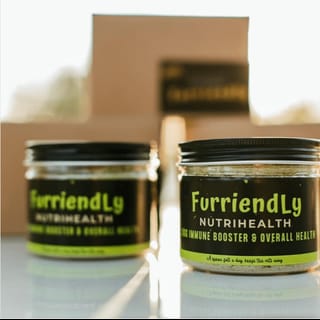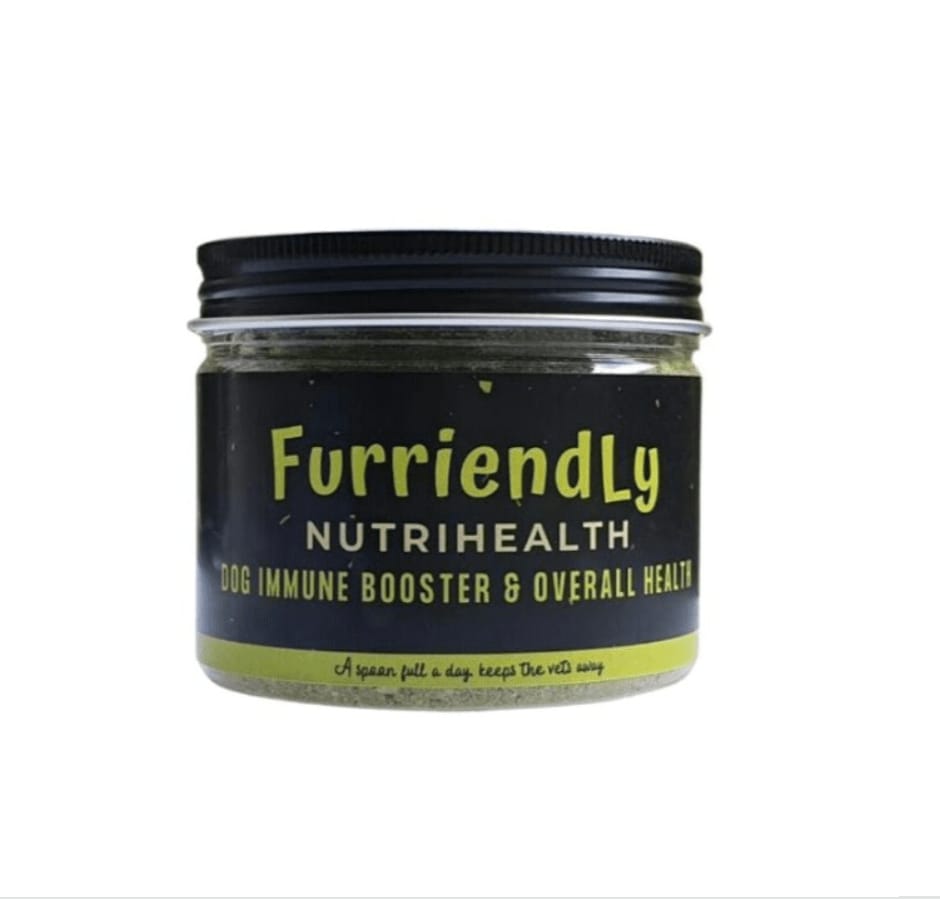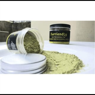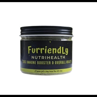 120gr Furriendly Nutrihealth - Dog Immune Booster Ingredients : Egg shell, organic flax seed, organic alfalfa, organic nutritional yeast. Daily Supplements for dog, full of fiber, vitamins B2, B6, B12, K, C, trace minerals, essential amino acid, Omega 3 & 6 fatty acid, and calcium. Great food supplement for both raw and dry food feeding, your pooch will love it! Shelf Life: 12 months at room temperature 18 months in the refrigerator (Keep it away from direct sun light) All natural, homemade, safe for human. No harmful ingredients such as xylitol, sugar, salt, and preservative. Becareful, they will ask for more!