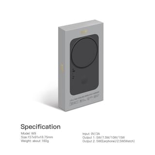 KP-WC-W9-BK/WH Notes: Please make sure the order is correct before check out. Products cannot be exchanged size / color / model For incomplete PRODUCT CLAIMS please include a PACKAGE UNBOXING video. After the goods arrive, please check the completeness of the product and make sure the goods are received in good condition before clicking "Order Received". #CATATAN: For Iphone users will be slightly raised due to the height of the camera but wireless charging still runs normally KiiP Wireless W9 is a Multifunction Wireless charger equipped with a Fan cooling system to maintain the device temperature to remain stable and safe. No need to worry about a messy desk because there are many chargers, because KiiP Wireless W9 can charge cellphones with a maximum output of 15W, Apple Watch with a maximum output of 2.5W and Airpods that support wireless charging with an output of 5W. It has a thin and minimalist design so that minimal space does not take up much space and the charger indicator is green when the charging process is running and red when the device battery is full. It has a magnetic that will make the charger more accurate and the device is not easily shifted (Applies if your device has a magnetic feature as well). Specifications: Model : W9 Size : 157x91x18.75mm Product Weight : 160g Input: 9V/3A Output 1 : 5W / 7.5W / 10W / 15W Output 1 : 5W (Earphone) / 2.5W (Watch) Package Weight: 250gram Package Contents: 1*KiiP Wireless W9 2in1 Wireless Charging Warranty: 12 Months (Factory defect, replace new immediately. user damage= warranty void)