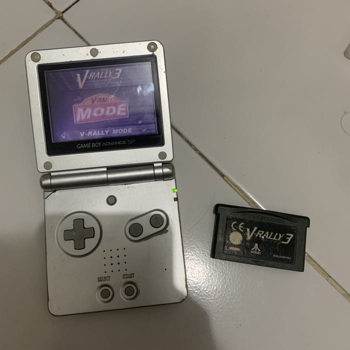 GameBoy Advance SP AGS-001 Media Player: GBA Cassette GameBoy Advance Conditions: - All padded buttons responsive - Screen burned, but still playable - Normal active speaker - There is a cue in the top left corner, does not interfere with performance Bonuses: - V-Rally 3 cassette (safe save-load)