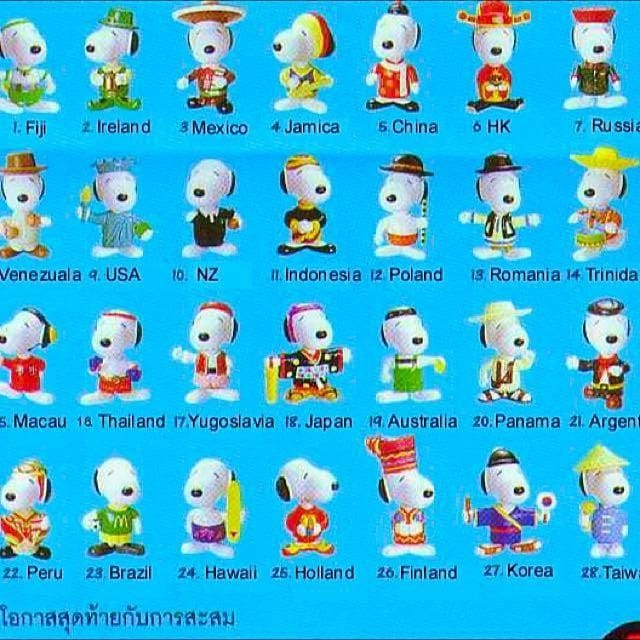 Snoopy World Tour 1 Completed set New condition Sealed 1. Alaska 2. Wild West 3. Australia 4. Canada 5. France 6. China 7. Germany 8. Hawaii 9. Hong Kong 10. Indonesia 11. Italy 12. Japan 13. Korea 14. Malaysia 15. Mexico 16. Mongolia 17. New Zealand 18. Norway 19. Latin America 20. Philippines 21. Scotland 22. Singapore 23. Spain 24. Switzerland 25. Taiwan 26. Thailand 27. United Kingdom 28. U.S.A #actionfigure #mainanmurah #mainan #actionfiguremcd #toys #jsdiecast #actionfiguremurah #minion #MainanMcd #mainanmcdonald #pokemonfigure #HappyMeal #actionfigurebatman #actionfigureoriginal #batmanthedarknightrises #dccomics #marvel #actionfiguremarvel #actionfiguredccomics #mainananak #koleksi #fastfoodtoys #toys #snoopy