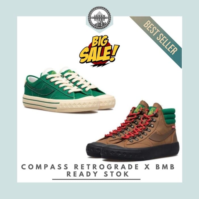 Compass®️ Retrograde x BBQ Mountain Boys For the first time we show the work of @Ilhamherry in executing the packaging of this collaboration to the public, how the typography artist took 1920s-style graphics to become the identity of this collaboration campaign. Complete with gold embossing on the certificate and details on the shoe box, this masterpiece recalls the taste depictions of cigar product wrappers in the past. Limited edition Compass® Retrograde design by Bbq Mountain Boys. READY STOCK HURRY UP AND ORDER BEFORE IT RUNS OUT! New Condition - 100% ORIGINAL NO HOAXES Complete Fittings & Packing DOUBLE BOX ⚠️RESEARCH BEFORE BUYING⚠️ Please make sure again before ordering, we recommend DOWN SIZE (if you usually use size 43, we recommend you by buying size 42, and so on), order errors outside our side, NOT our responsibility. Size Guide : US 5 / UK 4 / EUR 36 / JP 24 US 5.5 / UK 4.5 / EUR 37 / JP 24.5 US 6.5 / UK 5.5 / EUR 38 / JP 25 US 7 / UK 6 / EUR 39 / JP 25.8 US 8 / UK 7 / EUR 40 / JP 26.3 US 8.5 / UK 7.5 / EUR 41 / JP 27.1 US 9.5 / UK 8.5 / EUR 42 / JP 27.7 US 10 / UK 9 / EUR 43 / JP 28.4 US 10.5 / UK 9.5 / EUR 44 / JP 29 US 11 / UK 10.5 / EUR 45 / JP 29.5 #sepatucompass #banggabuatanIndonesia