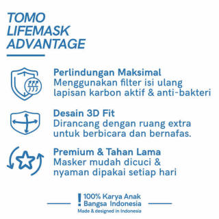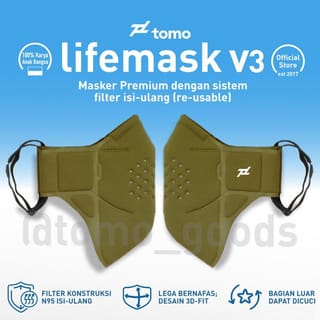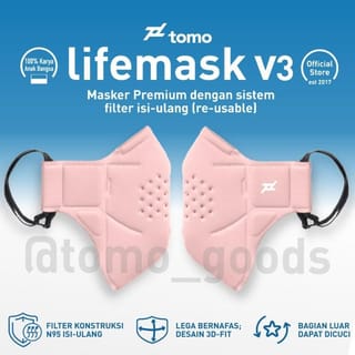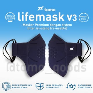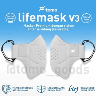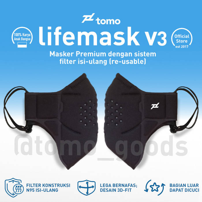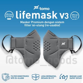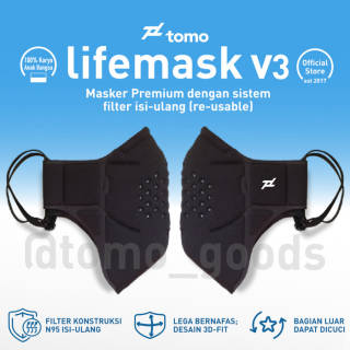 For OTHER COLORS variants, check our store page at tokopedia.com/tomogoods For users under 90kg, on average, use size M. Premium washable anti-pollution mask system, and refillable activated carbon filter. Available in 3 sizes for the best fit and comfort 3D Fit design that makes you relieved/not crowded. - Premium Anti-Pollution System (Reusable) - Includes 2 pcs Multi-Layer N95 Activated Carbon Filter - Ergonomic and comfortable 3D-Fit design (patent-pending) - Comfort loops + Neck Strap (which can be attached/removed) For users under 90kg on average, use size M.