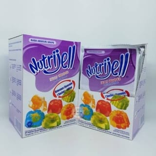 Nutrijell Jelly Powder Economical 1 Box Contains 12 Pcs All Fruit Variants For shipping security, please add bubbles or cardboard https://tokopedia.link/r9QCsEWpzjb Total Packaging : 1Box Contains 12 sachets Heavy: Chocolate 20gr plain 10g orange 10g melon 10g mango 10g grape 10g Lychee 10g guava 10g 5g Grasshopper Coconut 10g Strawberry 5G blueberry 10g All economical is indeed from the factory the gram is different but for type and packaging 1 type is a powdered jelly containing seaweed and conjacus. It is a high-fiber gelatin, processed from natural ingredients. A good meal for the whole family that can be enjoyed in a relaxed moment. How to cook : 1. Mix nutrijell with 1/2 cup of sugar (100 grams) or to taste. 2. Add 2 cups (400 ml) of water, mix well while heating to a boil. 3. Nutrijell is ready to be printed. Composition : Sugar, Maltodextrin, Equality Regulator, Carrageenan (19%), Konyaku Powder, Food Fiber, Synthetic Flavor, Synthetic Food Coloring (Carmoisin CI 14720, Diamond Blue FCF CI 42090