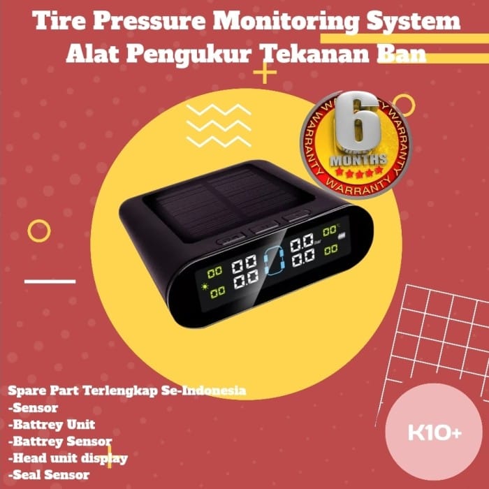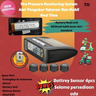6Months Head Unit Warranty excluding sensors The difference between the two models is that -K10 using 400mah battrey planting -K10+ can be upgraded using the battery 14500 series on the market which has a larger capacity between the range of 800mah-3000mah -T11 uses a planted battery of 800mah can also be upgraded using a type 14500 battery because the space is larger than other types OEM (Original Equipment Manufacturer) products of original component manufacturing companies that are installed / used in the assembly process of new cars. Product description; Monitor 4 tire pressure continuously (real time). The monitor is only placed / pasted on the dashboard without the need for any cable connection because the monitor battery is charged by solar power (solar cell) the monitor no longer needs to be charged enough with the sun even though it is cloudy. There is an alarm: sounds if one or more tire pressures decrease than recommended (can be set) and an alarm for tire temperature sounds if the tire temperature exceeds the recommended ( can be adjusted according to own calculations) automatically the monitor turns itself off if the car is not moving for 5 minutes and turns on if the car moves back. Tire pressure unit; BAR and PSI accuracy; 0.1Bar Waterproof: IP67 Size:71.5x94.5x29.5mm Package included: 1 x monitor 4 x external sensors 4 x nuts (sensor fastening bolts on the tyre valve to prevent the sensor from being stolen) 1 x wrench (sensor fastening lock) 1 x user manual The right way to use. 1. Use the Cable Charger obtained when purchasing the unit so that the life of the head unit can last longer. 2. Sensor installation should not be too tight because it can cause the seal to tear causing leakage.