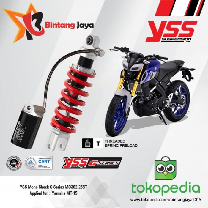Advantages of YSS G Series: - Designed to absorb impact using nitrogen gas on a bladder system in a separate tube. - Equipped with progressive spring & spring preload to enable spring hardness adjustment for daily use. - G-SERIES suspension has been used by International Racing Teams.