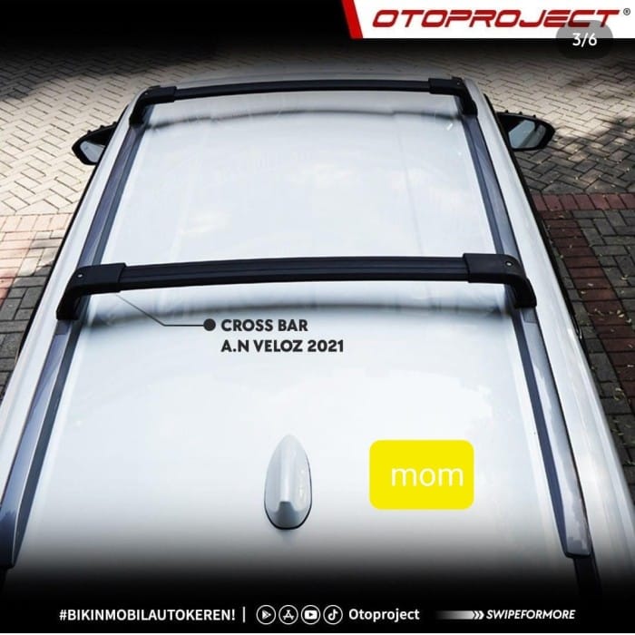 cross bar Special All New Veloz 2021- Now Installation of clamps on the roof rail and precision Easy to tighten / can be installed yourself Sporty and non-traceable model in your car Equipped with a safety lock Hard, thick, and Strong material Brand Autoproject Black Color