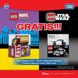 Brand: Star Wars Tomica/ Takara Tomy Product Packaging Dimensions: 8 x 4 x 4 cm Material: Diecast&Plastic Suitable for ages: 3+ Star Wars Tomica is one of the categories of Tomica which is a depiction of Star Wars characters in the form of cars & planes in 1:64 scale.