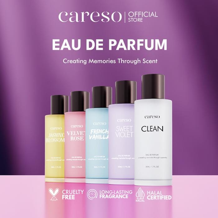 CARESO EDP 50ml Variant options: Jasmine Blossoms French Vanilla Velvet Rose Clean Sweet Violet My Dear Old Red Spring in New York Lychee Kiss Nude Tuberose Discover the new collection of CARESO Jasmine Blossoms Where perfume meets art. A more intense, more floral, fresher concoction of Jasmine Blossoms. Extracted from the finest Arabian Jasmine petals, we create a scent that gives an elegant yet feminine impression. French Vanilla Ready for a more intense, creamier, more satisfying vanilla scent? Imagine coconut milk, a sweet raspberry with a touch of vanilla. Inspired by the ice cream parlor in Paris, French Vanilla has a soft, indulgent, slightly floral texture with a hint of berry flavor, and in short: super delicious! Velvet Rose The more intense, more rosey, sweeter Velvet Rose concoction. Capture the scents that represent spring in Paris. Namely mayar flowers and bergamot complement the perfume scent with a feminine touch that makes it more durable attached to the skin. An unforgettable scent that will keep the memories of the trip. CLEAN "Clean" explores the aroma of texture and skin; "Clean" is an intimate expression, strong in its purity. This unisex fragrance opens with the freshness of fresh air that sticks into a soft rose. Sweet Violet Inspired by romanticism, this scent starts in the heart of an 18th century garden, it opens with the freshness of a juicy pear, wrapped in the soft petals of sweet pea, lilac and violet. The scent ends with the powdery and clean White Musk. My Dear The Essence of Feminity Fragrance Notes : Aldehydes, ylang-ylang, iris, neroli, bergamot, moss, vertiver Spring in New York Captivated by the Energy of New York The essence of spring! The freshness of ripe pears combines with the freshly blooming Freesia flowers, balanced by Rose, Amber, Patchouli and Whitemusk. The fragrance of perfume is intensified by the warmth of the body. Spray on your wrists, crease of your elbows & nape of your neck, for a longer-lasting and stronger scent. Paket THE UNITY BUNDLE Complete Package EDT: Enjoy a captivating scent with EDT. Body Lotion Tube: Gentle skin care with Body Lotion Tube. Body Fragrance: Add a pleasant scent with Body Fragrance. Product Description THE UNITY BUNDLE package includes EDT, Body Lotion Tube, and Body Fragrance. All of these products are designed to provide a pleasant scent experience and gentle skincare. There is no additional information about ingredients or quality. Choose this package for the complete scent experience.