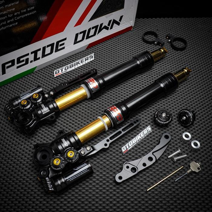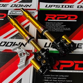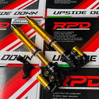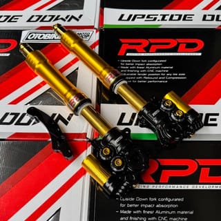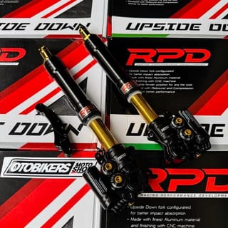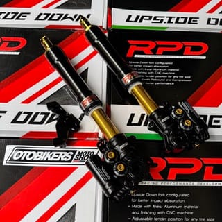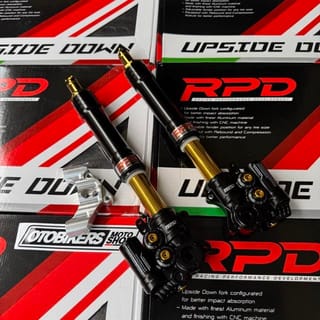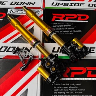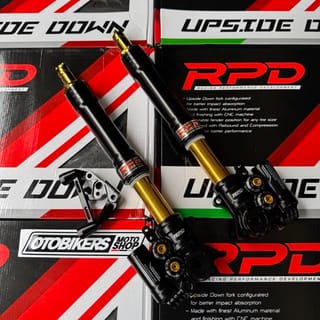 RPD Upside Down Suspension Gen 2 Features: -Adjustable Compression Find the perfect spot between comfort, stability and control. -Adjustable Rebound Adjustable setting for fast or smooth rebound. -Adjustable Preload Adjustable setting for ride height and suspension response to loads. Stylish CNC Finish Discover the exceptional durability and style of our CNC machined materials. Original RPD by TDR - Designed to absorb shock better. - Made with the best aluminum material and finished using CNC machine. - Specially designed with a variety of color options for a sportier look. - PNP, adjustable fender position for any tire size. Color and brequette options: - Black - Axial - Gold - Axial - Black - Radial 100 - Gold - Radial 100 - Black - Radial 108 custom - Gold - Radial 108 custom Axial Brakes: Brakes for Axial caliper type 1Piston / Nissin 2P disc size stdandr. If change to 4P Axial calipers (Such as: Brembo, KTC, Frando etc) there must be additional breckets Radial Fracture 100: Brakes for Radial Caliper Type P100 Brembo RPD NMAX can be to dis standard 230, Add bsohing for larger size, Or you can order a separate radial brake. Aerox Gearbox Radiator Gearbox Mandatory Disc 260mm Radial Breket 108 Csutom: Brake for Radial P108 Brembo caliper type disc size 260. Custom brequettes only have silver color Select As needed. A set of shcok can only get 1 brechet of your choice For right-left modifications or double disc order, separate brequettes for the left. Variants: -NMAX OLD NEW = NMAX NEO TURBO = AEROX ALPHA - AEROX OLD NEW Please inquire about stock before ordering.