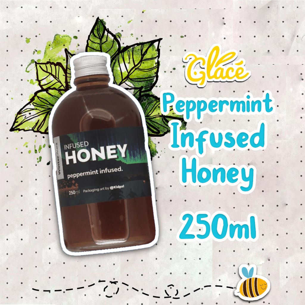 GLACE WINTER AURA ❄️ Latest innovation of Honey, an Infused Honey! But what is infused honey? It’s a naturally flavored honey through extraction, using honey itself. through extraction using honey. You may find several flavored honeys, but nothing’s matched infused honey. The balanced taste without losing original honey characteristics. Glace Winter Aura, honey with peppermint flavor. Using cotton blossom honey as our base, we combine a sweet ‘n sour but fruity, with peppermint brings cool sensation through your throat. One sip of them goes brrr like cold! Glace Infused Honey peppermint is packed in 250ml bottle. A handy version so you could glaze them in any food or drinks you like. GLACE PEPPERMINT INFUSED HONEY BENEFITS! - Boost up immune system - Remove bad breath - Improve digestion - Boost up sleeping quality - Boost up concentration - Relieve influenza symptom’s - Reduce stress GLACE PEPPERMINT INFUSED HONEY BESST COMBINED WITH: - Tea - Pastries - Pancakes - Ice cream - And many more! STORAGE SUGESSTION - Stored in room temperature - Do not put in fridge - Keep away from direct sunlight