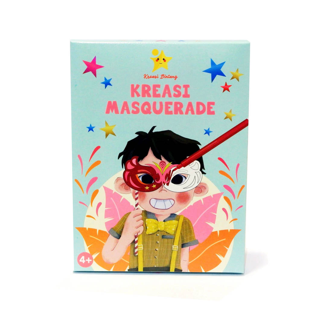 Create your own masquerade masterpiece with Kreasi Bintang's Masquerade set. Colour and decorate masquerade - it's a fun activity with kids to do a role play at home with Kreasi Masquerade. What's included inside the box: • 6 masquerade black and white • 2 masquerade coloured • 2 sheets of star sticker • 8 paper straw • 1 Set of markers