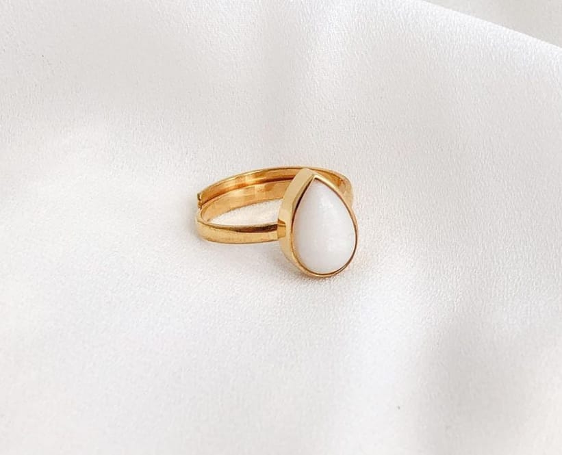 Our beautiful crafted Milk Stone Gold Plated Drop Ring, the stone is made off your own DNA breastmilk. A unique piece of jewelry that will remind and cheerish your breastfeeding journey. All our orders are made by preorder. Please be informed that the order can take up to 4 weeks after receiving your breastmilk. This doesn’t include shipment from us back to the client.