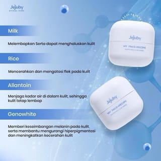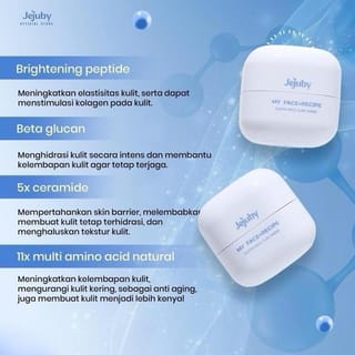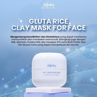 JEJUBY GLUTA RICE CLAY MASK UPSIZE REFILL - 100g is a face mask that is formulated to remove dead skin cells while brightening and evening skin tone. Containing Genowhite, Milk, and Glutathione, this mask works effectively to give skin a brighter, more even-looking skin. Equipped with 5X Ceramide, Sodium PCA, Rice Extract, Allantoin, and Natural Prebiotic, this product helps maintain a healthy skin barrier, increase the skin's natural moisture, and make it smoother and softer 8 HERO INGREDIENTS Brightening Peptide: Helps brighten the skin naturally. Beta Glucan: Relieves irritation and provides a soothing effect on the skin. 5X Ceramide: Helps repair and strengthen the skin barrier, keeping the skin moisturized. 11X Multi Amino Acid Natural: Provides essential nutrients for the skin, making it healthier. Milk: Contains vitamins and minerals that nourish the skin and provide moisture. Rice: Rich in antioxidants that help rejuvenate the skin. Allantoin: Soothes and repairs irritated skin. Genowhite: Helps brighten skin and even out skin tone HOW TO USE Apply the mask to the face for 5-10 minutes, then rinse with clean water Use 1-2 times a week for optimal results Safe to use for acne-prone skin (non-inflamed acne) Minimum age of 10 years Bumil & Busui Approved BPOM NA18250200286 HALAL ID36210017572340524