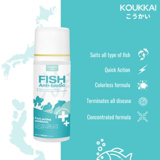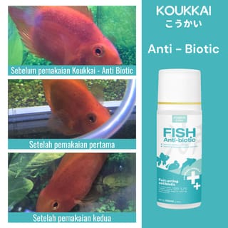 Koukkai Fish Antibiotic, a broad-spectrum anti-bacterial drug that can eradicate all external infectious diseases such as bleeding bodies, white spots (white spots caused by bacteria), red spots, melted mucus, rotten ulcers on the tail and fins, scales peeling, decreased appetite, red gills and various other diseases caused by bacteria.... To treat infections in bacterial can use Koukkai Anti-inflammatory, found in our storefront Benefits of Koukkai Fish Antibiotic: -Suitable for all kinds of ornamental fish - Colourless Formula, does not change the color of aquariums, hoses, decorations, or plants - Quick Action, the disease will disappear in 2-5 days completely - Concentrated Formula, with a stronger formula, Koukkai Fish Antibiotic can treat up to 1000 liters of water -100% money back guarantee, If after being treated, the disease does not heal, please return :) How to use: - Dose 2.5ml of water or 1 teaspoon of Koukkai Fish Antibiotic per 25 liters of water - Change 1/2 aquarium water 3x a day every 6 hours (morning, afternoon afternoon) then give another half dose of antibiotics (it is recommended to replace with chlorine-free water such as refillable water so that the fish is not stressed) - Repeat for 2-5 days until the condition of the fish improves For quarantine of new fish: - Add 1 ml of water or half a teaspoon of Koukkai Fish Antibiotic per 25 liters of water - Replace 1/2 aquarium water 6 hours after treatment (it is recommended to replace it with chlorine-free water such as refillable water so that the fish are not stressed) Store in a cool, dry place and keep it away from direct sunlight To treat diseases caused by fungi and fleas, you can use anti-parasitic koukkai fish https://www.tokopedia.com/koukkaiofficial/obat-ikan-anti-jamur-kutu-parasit-koukkai-obat-ikan-anti-kutu, there are also anti-chlorine koukkai products to neutralize chlorine in PAM water instantly and koukkai antioxidant blackwater vita liquid which functions to imitate the natural habitat of fish, temu