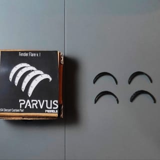 Parvus Models Fender Flare Universal V1. Over fender accessories for custom diecast scale 1 64 such as hot wheels, tomica, and minigt. The flexural material is not easy to break and can be adjusted to the shape of the car fender. Black glutacy is included as a temporary adhesive and a putty. 1 set of 4 pcs (for 1 car)