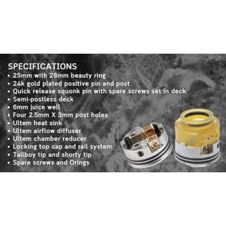 Products with 100% ORIGINAL GUARANTEE Don't hesitate to buy goods at our store, Goods are guaranteed 100% Ori Asgard Mini RDA *100% Authentic by Vaperz Cloud Parameters: - 25mm with 28mm beauty ring - 24K Gold Plated Positive Pin and Post - Quick release squonk pin with spare screws set in deck - Semi-postless deck - 6mm juice well - Four 2.5mm X 3mm post holes - Ultem heat sink - Ultem airflow diffuser - Ultem chamber reducer - Locking top cap and rail system - Tallboy tip and shorty tip - Spare screws and Orings Includes: 1x Vaperz Cloud Asgard Mini RDA 1x Beauty Ring 1x Tallboy 810 Drip Tip 1x Shorty 810 Drip Tip 1x Spare Parts Kit COMMEMORATION!!! * BUYER'S FAULT IS NOT OUR RESPONSIBILITY * IF YOU DON'T PROVIDE A NOTE, IT WILL BE SENT RANDOMLY * IN DOUBT, PLEASE GO TO THE STALL NEXT DOOR ONLY * NO RETURN NO COMPLAINT * NO UNBOXING VIDEO IS INCLUDED NO COMPLAINTS Advice from us, when opening a product package. Please record when opening the product, as evidence if there is any fault or defect in the product Note: ask for stock and color availability. Please write your desired color in the notes Yukk, directly at