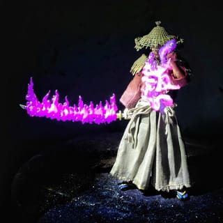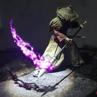 Divine Confetti Purple Flame Effect get 4 effects according to pic 2 To make a flame effect to attach to a long or short katana 1 flame effect made to be installed on the spear / spear 1 more Japanese kanji writing effect on the finger, Suitable for Figma Sekiro.. for a scale of 1/12 figure only examples not for sale