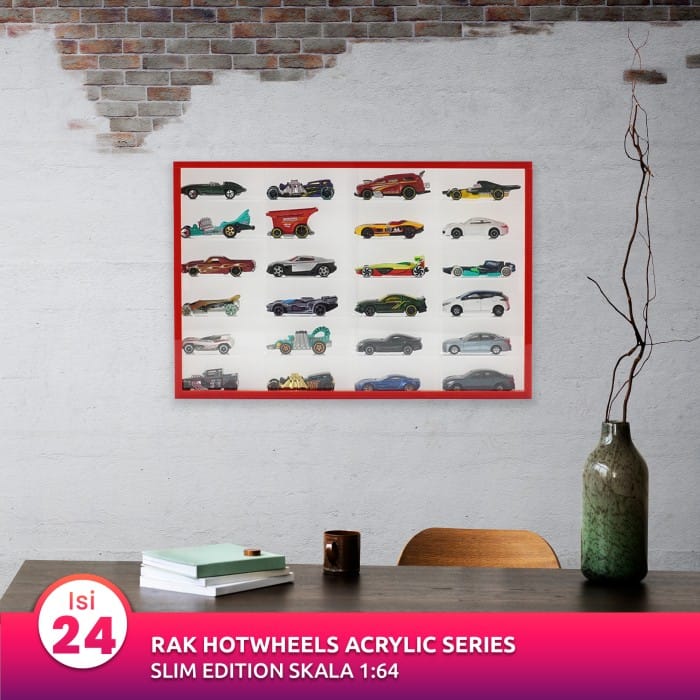REGULAR 24-FILL ACRYLIC HOTWHEELS RACK, WITHOUT SLIM EDITION LOGO 1:64 SCALE Specifications: FULL ACRYLIC MATERIAL Frame 2 mm Color (Variance Suit) 2mm backdrop (rear) Milk White/Black (Variant Suit) Clear 2 mm bulkhead Please Check Variant Menu The application can be hung on the wall, there are hanging holes Box Size: 9 x 4 x 4 cm (H x L x H) Number of Boxes : 4 Columns, 6 Rows = 24 units Shelf Size : Length 36.4 cm x 5.4 x 24.4 cm (H x L x T) Door Sleeding to the Right Left Side Condition of the Sequence Safe Packing Link to logo: https://www.tokopedia.com/duniaaksesoris/rak-rack-hotwheels-1-64-isi-24-header-slim-fit-edition Custom Admin : Chat Via Wa +62 853-2656-6396 Want to need it quickly? JABODETABEK area can also use INSTANT COURIER, please follow here: https://www.tokopedia.com/novanodisplay/rak-diecast-mobil-skala-1-64-isi-24-slot-reguler-merah-e9595? ready stock