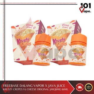 *ALREADY EXCISE Krusty Crepes V1 Original *100% Authentic by Dianna Dee x Java Juice x Dalang Vapor Flavor : Original Cheese Crepes ( CREAMY ) Nicotine : 3/6MG Volume : 60ML Premium Local E-Liquid Store Settings: - Shop Operating Hours 09.00 - 17.00 - Orders above 17.00 will be processed the next day - Customer Service Shop 09.00 - 21.00 ATTENTION!! Complaints must include an unboxing video and a physical photo of the product received. Without the video and physical photos of the goods received, the complaint cannot be processed.