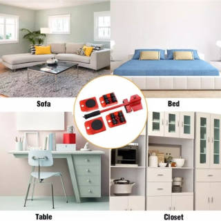 Heavy Goods Moving Actuators, Cabinets, Sofas, Refrigerators, Beds amp; Other Household Accessories ================================================== PLEASE WATCH A DEMO VIDEO ON HOW TO USE IT ================================================== FEATURES: 1. Made of ABS and iron, durable. 2. It is suitable for sofas, bookshelves, tables, chairs, beds, etc. 3. Strong load-bearing capacity, so you can easily move furniture or heavy objects SPECIFICATIONS: Material: ABS+iron Color: RED, YELLOW amp; BLUE Maximum Load : 150 kg PACKAGE CONTENTS : ✓1 Transport/Jack. ✓4 Heavy Goods Drive/Slider Panels.