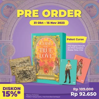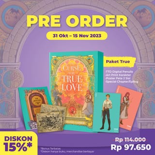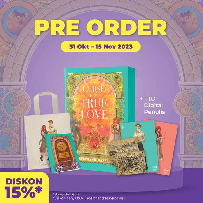 **Deficiency and damage claims must be accompanied by a package unboxing video. Without including an unboxing video, we apologize for the unacceptable claim. BUY=AGREE. Thanks.** ----- Mizan Group's Original Book ----- 3rd novel of the Best Seller Once Upon A Broken Heart (Caraval Novel Spin-off) Estimated Delivery PO= November 20, 2023 Package Variation Details: Curse Package = Book, TTD Digital + Art Print Characters, 2 Sided Map Poster True Package = Book, Digital TTD + Character Art Print, 2-Sided Map Poster, Special Chapter/Epilogue Love Package = Book, TTD Digital + Art Print Characters, 2-Sided Map Poster, Special Chapter/Epilogue, Totebag Synopsis Title: A Curse for True Love Author Stephanie Garber Noura Books publisher Categories Fantasy Size 14 x 21cm ISBN 978-623-242-419-7 Number of pages 364 pp. Back Text of the Book There's nothing Evangeline Fox wants more than a happily ever after ending. She married the prince charming and lived in the royal palace. He should have had a good time without a single worry. However, why did he feel empty instead? Why did it feel as if something was missing and left a gaping hole in his heart? Why is her heart pounding for a strange man other than her husband? A beautiful, golden-haired angel who triggers a memory that seems to be forgotten: The man was willing to carry her through anything, not just freezing waters. The man would drag her through the fire if necessary, carrying her to safety from the effects of war, from crumbling cities and broken worlds. Something has changed in Evangeline. It seems, at this moment, she is no longer the girl who has eternal hope, who believes in fairy tales, love at first sight, or a happily ever after ending. Superiority - The story in this third book involves many fairy tales, curses, and fascinating magical places. - The main attraction of this book is its male character, Jacks, who can be called a villain or villain.