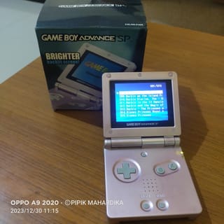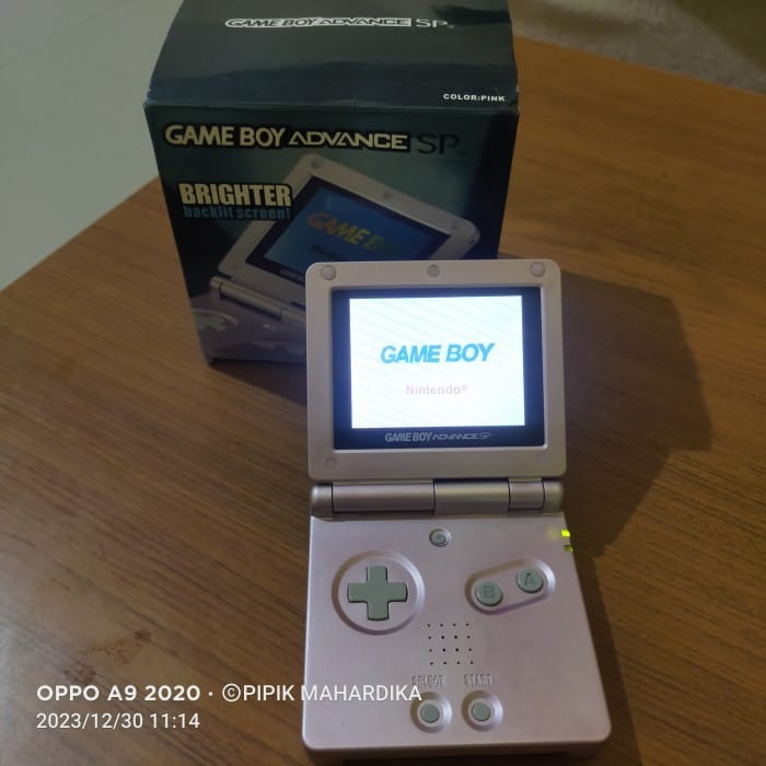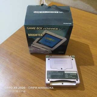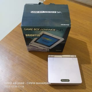 Saturday , December 30, 2023 . Ready stock . Gameboy advance SP pink fullset . Seamless, all buttons work . LCD ok. Clean , Hinge Ok . Can read tapes . In the machine there is already a game . Completeness _ Gameboy Unit _Battery _ CAS adapter _ dusbuk _ Data cable _ Manual Book . Note: a small sound is barely audible