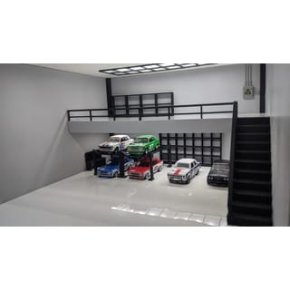 Diorama Mezzanine Clean Version Size : - D x W x H: 25 x 25 x 15 cm Ingredients : - PVC Board - 3D Printing Equipment : - Wheel Rack - Cabinet Shelves - Oil Rack - Workbench - 2 Parking Elevator - SUPER WHITE LED - Adapter