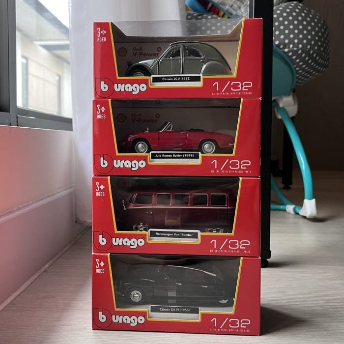Diecast Burago Classic Car full set 4 pcs Price for full set Still new, only sell fullset - Citroën 2CV (1952) - Alfa Romeo Spider (1966) - Volkswagen Van "Samba #34; - Citroën DS19 (1955) Please if you are interested
