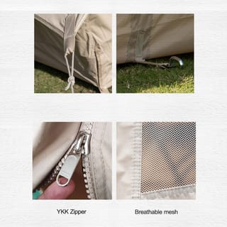 Glamping tent for 3-4 people is waterproof and has good air circulation. Simple tent installation, enough with 2 poles and using thick and premium Cotton material. Brand: Naturehike Model no: NH20ZP003 Category: Tents Color: Gold (Khaki brown) Material : *Flysheet: Cotton Blending *Window: Polyester Breathable mesh *Under Tent : PVC Composite Cloth (Waterproof) *Pole (Frame): Aluminum Alloy *Accessories: Aluminum Alloy (Peg), and nylon (tent rope) Size: *305 x 183 x 150cm (open) *66 x 25 x 20cm (Packed) Capacity: 3-4 persons Weight: 12300g (including accessories and storage bag) Package Contents: *1x Flysheet *2x Pole *20x Stake + Pouch *10x Strap *1x Strap *1x Storage Bag Product Features : *Waterproof index PU 1000MM (outside of tent) and PU 3000MM (bottom outside of tent) *Premium Cotton material, strong and not easily torn *Uses 2 sturdy poles *Has 2 doors with hooks *Windows along the right and left of the tent with mesh material for good circulation *Using YKK Zipper *10 rope tie points on pegs to make them strong against strong winds *Suitable for camping & family picnic 3-4 people Note : Shipments will be subject to volume calculation because the goods are large