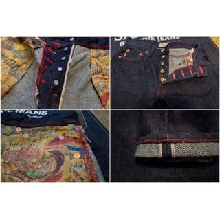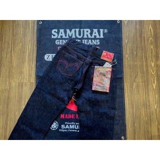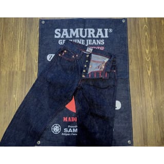 Samurai S710XX21oz-SY "Yukimura" 21oz Indigo Selvage Jeans Here it is one of the most anticipated release from Samurai Jeans in this year, a special and limited jeans, a tribute to Yukimura Sanada, who was known as the best warrior in Japan. While most other warlords eventually succumbed to the military might of the great shogun, Ieyasu Tokugawa, Yukimura never gave in and fought faithfully for his lord until the very end. Known for his military prowess and excellent command skills, he would wear all-red armor in battle which led to him being given several nicknames, one being "Crimson Demon of War". Crafted from Samurai Heavyweight 21oz Cho-Kiwami Selvage Denim and Inspired by this red armor, or "akazonae", Samurai has adopted red thread for the decorative stitching, while the black thread employed elsewhere on the jeans refers to the "Sanada Ten Braves" who would work under the cover of darkness for their secret missions. For the pocket lining, they've come up with a pattern created just for this model which shows the Sanada army fighting against Ieyasu Tokugawa at Osaka Castle. Sanada Ten Braves: A legendary band of 10 ninja who assisted Yukimura Sanada in his battles. They are also sometimes known as the Ten Heroes of Sanada. These special jeans some special features, such as: Gold covered iron pine Button Fly. "Natsuno-Jin" printed pocket lining. Hidden rivets. Raised belt loops. Real Iron for Hardwares. Real Leather Patch. and other details you can always expect from Samurai Jeans. Available now in our store. 21oz Cho-Kiwami Indigo Selvage Denim. Unsanforized but one-washed (no more shrinkage). 100% cotton. Slim Straight Fit. Hidden Rivets. Gold Covered Iron Pine Buttons. Copper Rivets. Deer Leather Patch. Red Selvage with silver lame ID. Crafted in Japan.