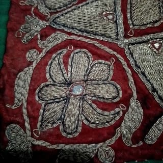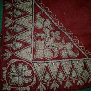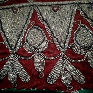 "INDONESIAN CULTURAL HERITAGE" Custom Fabric: Ancient / / antique cloth to cover food or Palembang Traditional Delivery. For collection or to be a wall decoration. Rectangular velvet fabric embroidered with gold thread forms a tumpal motif and flora is covered with fabric at the bottom. The condition is still good. ± 80 - 90 years. Palembang - South Sumatra. Size: 63 x 58 cm. Weight: 168 grams.